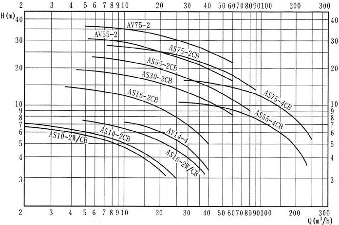 【AS型撕裂式潛水排污泵】性能型譜圖:
